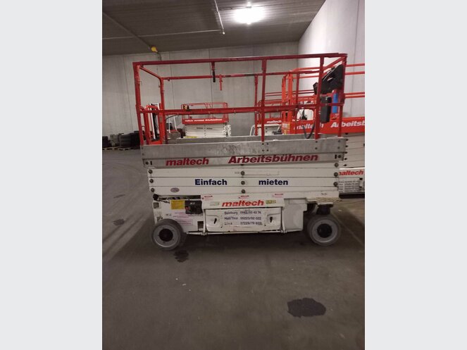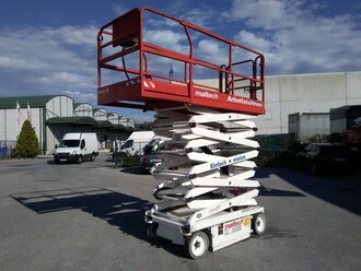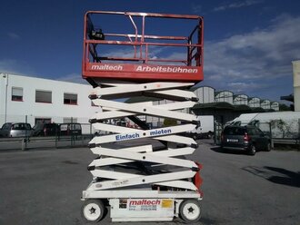 Mit der kompakten MS 117 erreichen Sie 11,70 m Arbeitshöhe. Die Arbeitsfläche kann vergrößert, und damit ein Hindernis von 1,25 m überwunden werden. Die abriebfesten Weißreifen hinterlassen keinerlei Spuren am Boden. Der leise Batterieantrieb sorgt für entspanntes Arbeiten. Auf Grund des geringen Gewichtes kann die Maschine in Gebäuden mit begrenzter Bodenbelastung eingesetzt werden (Zwischendecken, etc.). Der große Lenkeinschlag ermöglichte punktgenaues Manövrieren um engste Kurven. Mit geklapptem Geländer passt die Bühne durch jede Türe.