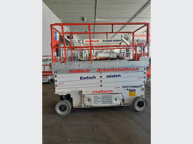 Mit der kompakten MS 99 erreichen Sie 9,90 m Arbeitshöhe. Die Arbeitsfläche kann vergrößert, und damit ein Hindernis von 1,40 m überwunden werden. Die abriebfesten Weißreifen hinterlassen keinerlei Spuren am Boden. Der leise Batterieantrieb sorgt für entspanntes Arbeiten. Auf Grund des geringen Gewichtes kann die Maschine in Gebäuden mit begrenzter Bodenbelastung eingesetzt werden (Zwischendecken, etc.). Der große Lenkeinschlag ermöglichte punktgenaues Manövrieren um engste Kurven. Mit geklapptem Geländer passt die Bühne durch jede Türe.