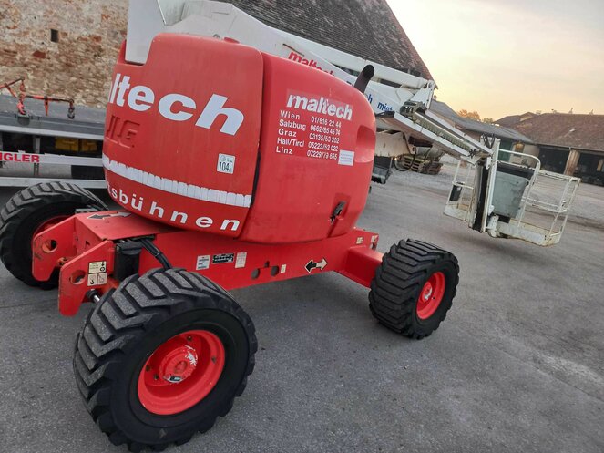 Mit der MT 178DAJ erreichen Sie 17,80 m. Arbeitshöhe bei 230 kg Tragkraft. Durch den Gelenkarm kann spielend leicht über Störkanten und Hindernisse hinweg gearbeitet werden. Der Korbarm ermöglicht dabei eine besonders flexible Positionierung des Arbeitskorbes. Dank kraftvollem 4WD-Dieselantrieb, Stollenreifen und einer Pendelachse ist es möglich auch schwer zugängliche Arbeitsbereiche im Gelände anzufahren. Durch Fahren in voller Höhe können unterschiedliche Arbeitspunkte schnell erreicht werden.