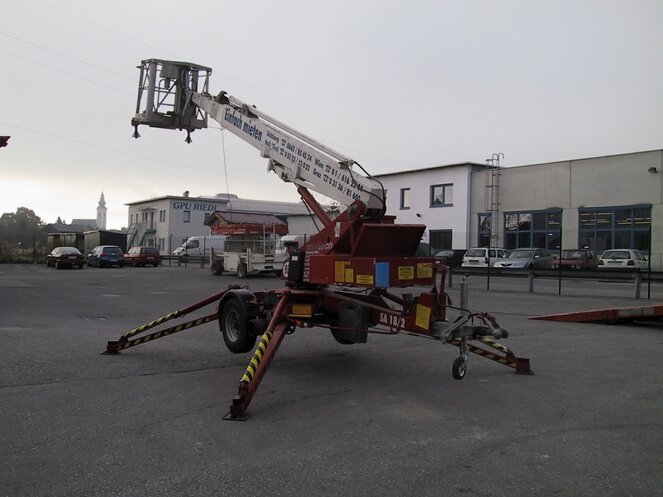 Mit dem MA 18 erreichen Sie mit 200 kg Tragkraft 18 m Arbeitshöhe. Durch den hydraulischen Rangierantrieb kann der Anhänger vor Ort rasch und mühelos an seinen Einsatzort bugsiert werden, wo er dank vollhydraulischer Abstützung schnell und unkompliziert zum Einsatz gebracht werden kann. Die schmale Breite ermöglicht die Zufahrt in engste Bereiche. Auf Grund des geringen Gewichtes kann gut in Gebäuden mit begrenzter Bodenbelastung gearbeitet werden. Der leise 230V-Elektroantrieb sorgt für entspanntes, emissionsfreies Arbeiten.
