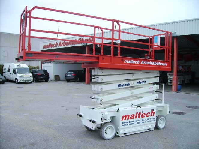 Mit der schmalen MS 125 erreichen Sie 12,50 m Arbeitshöhe. Durch die Breite von nur 1 m eignet sich die Bühne z. B. ideal zur Montage zwischen Regalsystemen in Hallen. Die Arbeitsfläche kann vergrößert, und damit ein Hindernis von 1,60 m überwunden werden. Die abriebfesten Weißreifen hinterlassen keinerlei Spuren am Boden. Der leise Batterieantrieb sorgt für entspanntes Arbeiten. Zur Einbringung kann die Gerätehöhe durch Klappen des Geländers reduziert werden. Das ermöglicht die Zufahrt in viele Bereiche mit begrenzter Einfahrtshöhe.