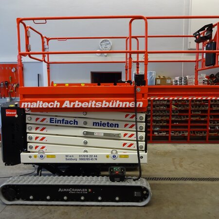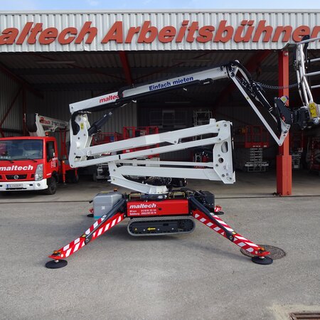Die bei maltech mietbaren Spezial-Arbeitsbühnen mit Kettenantrieb eignen sich für Arbeitshöhen von bis zu 40 Metern und tragen bis zu 400 Kilogramm. Sie können zwischen Diesel- und Elektroantrieb sowie Geräten mit oder ohne Abstützungen wählen.