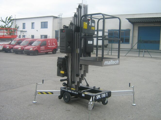 Mit dem extrem leichten und kompakten MPL 110 erreichen Sie 11,10 m Arbeitshöhe bei 135 kg Tragkraft. Dank seiner kompakten Abmessungen kann der Personallift von Hand in engste Bereiche und durch jede Tür bugsiert werden. Auf Grund des geringen Gewichtes von nur 430 kg ist der MPL 110 optimal für Gebäude mit sehr begrenzter Bodenbelastung geeignet (Theater, Veranstaltungshallen, Zwischendecken, etc.) und kann wenn nötig sogar im Lift befördert werden.