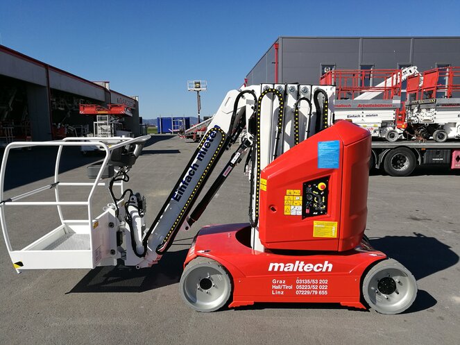 Mit der kompakten MT 127N erreichen Sie 12,65 m. Arbeitshöhe bei 200 kg Tragkraft. Der Korbarm ermöglicht es Ihnen Hindernisse 6 m weit zu übergreifen (z. B. Fertigungsmaschinen in Hallen). Die abriebfesten Weißreifen hinterlassen keinerlei Spuren am Boden. Der leise Batterieantrieb sorgt für entspanntes Arbeiten. Großer Lenkeinschlag, kompakte Abmessungen und überhangfreies Schwenken ermöglichten punktgenaues Manövrieren und das Arbeiten in engsten Bereichen. Die MT 127N ist das optimale Gerät für Instandhaltungsarbeiten in Industriebetrieben.