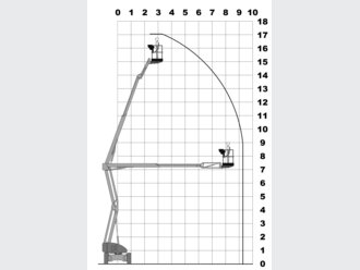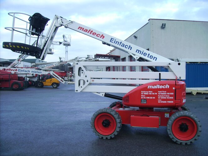 Mit der MT 170HA erreichen Sie lautlos und emissionsfrei 17 m. Arbeitshöhe. Sie ist daher ideal für den Einsatz in sensiblen Bereichen wie Krankenhäusern geeignet. Ist kein Strom vorhanden, sorgt der Dieselmotor für Antriebsenergie. Dank Gelenkarm können Störkanten überwunden, dank Korbarm kann der Arbeitskorb flexibel positioniert werden. Die Weißreifen hinterlassen keinerlei Spuren; trotzdem ist das Gerät durch 4WD und Stollenprofil geländegängig. Durch Fahren in voller Höhe können unterschiedliche Arbeitspunkte schnell erreicht werden.