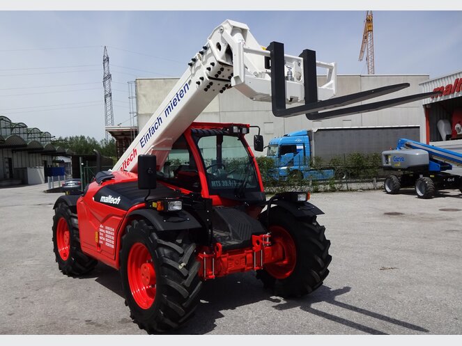 Mit dem kompakten MTS 33.9 können Sie 3,3 Tonnen befördern, Material oder Waren auf 8,60 m heben und auf 5,70 m horizontal austeleskopieren. Anbauteile funktionieren den Stapler schnell z. B. zum Kran um. Die Allradlenkung sorgt für einen kleinen Wendekreis und rasches, sicheres Manövrieren auf engen Baustellen. Mit dem Hundegang kann der Stapler seitlich versetzt werden, ohne dabei auszuscheren. Allradantriebantrieb und Stollenreifen ermöglichen das Fahren auch in unwegsamem Gelände. Die Panoramakabine bietet Rundumblick für mehr Sicherheit.