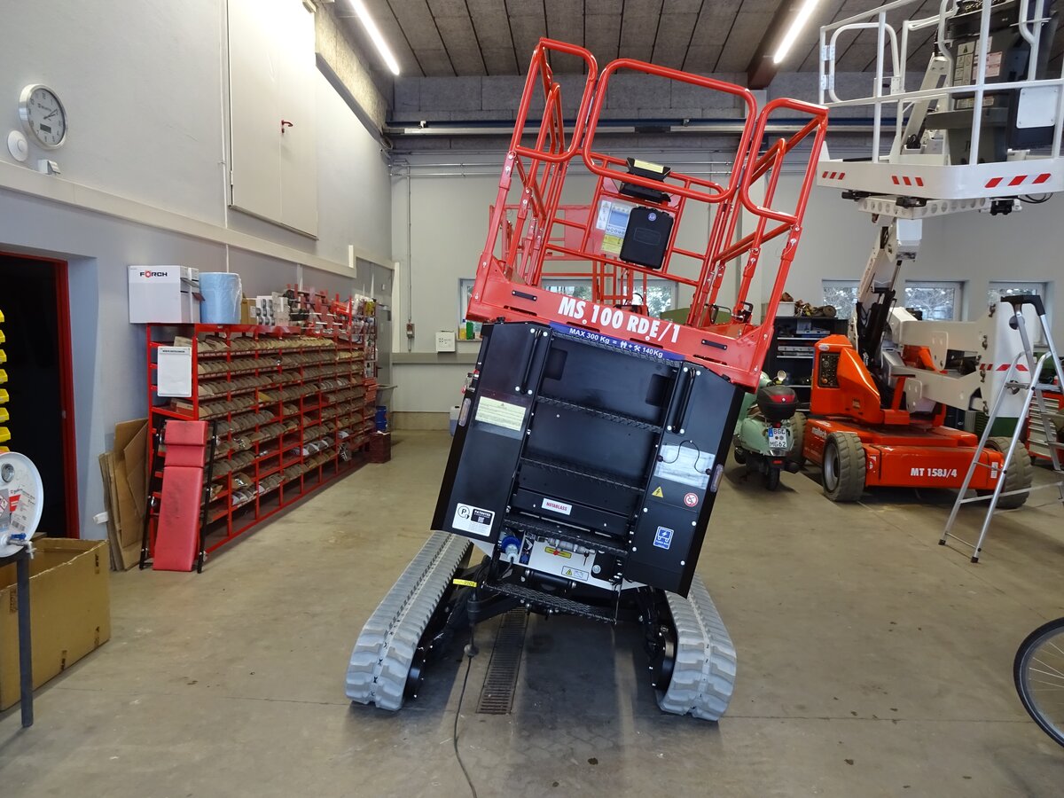 Ab sofort ist die kompakte Scherenarbeitsbühne MS 100RDE mit Raupenfahrwerk verfügbar. Das innovative Bi-Leveling-System sorgt für sicheren Stand auch auf unebenem Gelände und ermöglicht Arbeiten in Höhen bis zu 10 Metern bei einer Tragfähigkeit von 300 kg. Diesel- und Elektroantrieb garantieren hohe Flexibilität und ein komfortable Bedienung.
