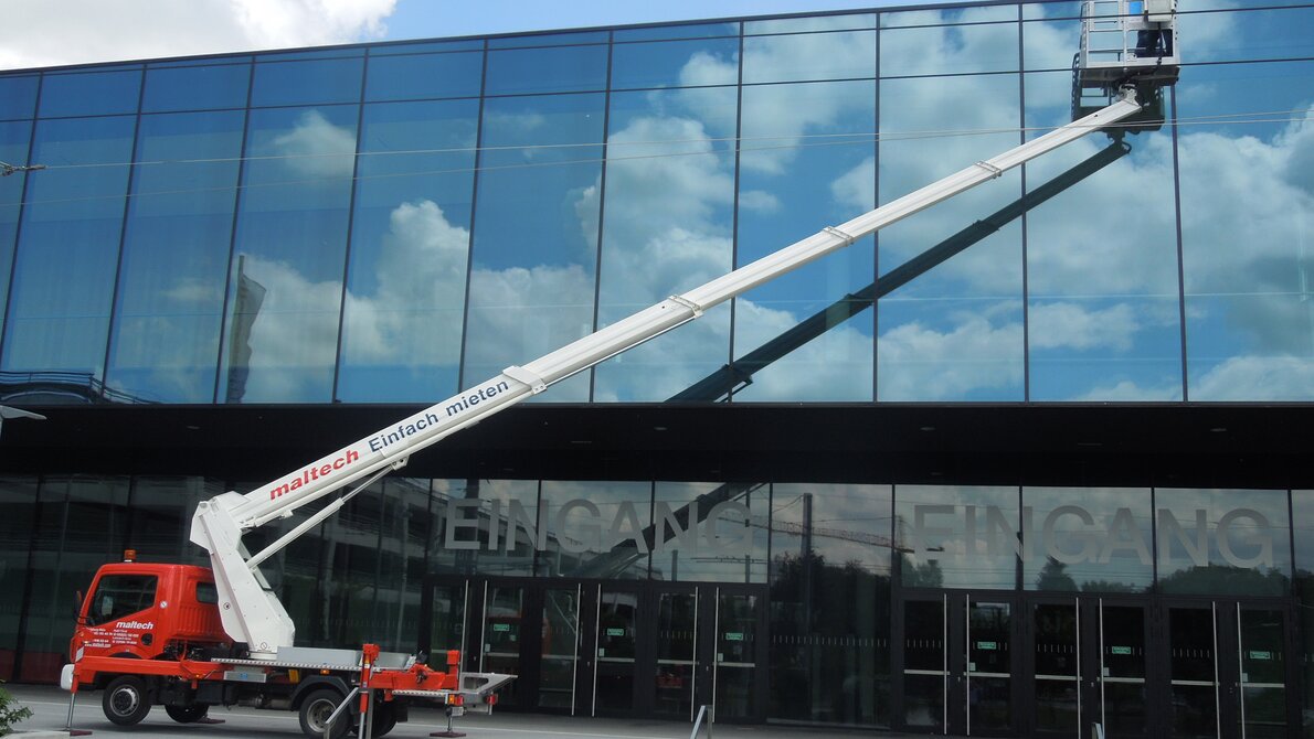 An diesem Standort können LKW-Arbeitsbühnen bis 3,5 Tonnen, die mit B-Führerschein gefahren und bis 27 Meter Arbeitshöhe erreichen können, gemietet und abgeholt werden.