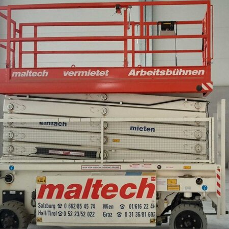 Nožnicová pracovná plošina BS 99Pracovná výška 9,9 mRozmery plošiny 2,5 m x 1,12 mRok výroby 2006