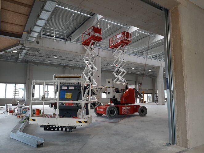 Bei der Errichtung der Gebäude wurden die unterschiedlichsten Gerätetypen benötigt. Angefangen bei unseren extraleichten, rein elektrisch betriebenen Einmastbühnen mit Arbeitshöhen von 5,70 m bis hin zu Elektroscheren bis 16,00 Meter Arbeitshöhe konnte immer eine passende Lösung zur Verfügung gestellt werden. Weiters kamen unsere emissions- und lärmarmen Hybridteleskopgelenke von 17,00 m bis 20,80 m für den Innen- wie Außenbereich zum Einsatz. Ebenso versahen Teleskop(gelenk)-Arbeitsbühnen in den Antriebsarten Elektro oder Diesel von 11,20 m bis 22,00 m fleißig ihren Dienst.