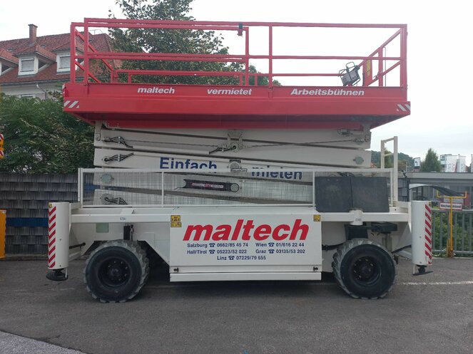 Die sehr stabile MS 227DAS kann mit ihrer großen Plattform unglaubliche 1000 kg Tragkraft auf eine Standhöhe von 20,70 m heben. Die Arbeitsfläche kann mittels Plattformausschub auf über 7 Meter verlängert werden, was z. B. die Montage von sehr langen Fassadenpaneelen ermöglicht. Der kraftvolle Dieselantrieb und die Stollenreifen ermöglichen es auch schwer zugängliche Arbeitsbereiche im Gelände zu erreichen. Dank der selbstnivellierenden Abstützung kann die Bühne auch auf unebenem Untergrund schnell und sicher zum Einsatz gebracht werden.