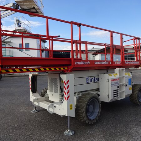 Scheren-Arbeitsbühne MS 122DASLArbeitshöhe 12 mPlattformmaße 4 m x 1,8 mTragkraft 1.134 kg