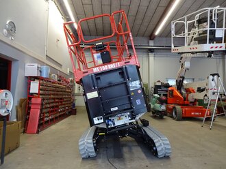Ab sofort ist die kompakte Scherenarbeitsbühne MS 100RDE mit Raupenfahrwerk verfügbar. Das innovative Bi-Leveling-System sorgt für sicheren Stand auch auf unebenem Gelände und ermöglicht Arbeiten in Höhen bis zu 10 Metern bei einer Tragfähigkeit von 300 kg. Diesel- und Elektroantrieb garantieren hohe Flexibilität und ein komfortable Bedienung.