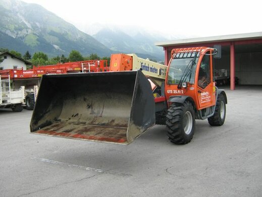 Die großvolumige Erdschaufel, die schnell und einfach am Gabelträger eingehängt wird, bietet eine Kapazität von 800 Liter und 1.800 kg. Sie ist deshalb ideal für den Transport und das Aufhäufen von leichtem Schüttgut wie z. B. Hackschnitzel geeignet. Dank unserer wendigen Teleskopstapler mit Allradlenkung und Hundegang ist dies sogar auf engstem Raum möglich. Durch Ihre Breite von 2 Metern können damit aber auch große, leichte Teile gehandelt werden z. B. Abtransport von Schaltafeln beim Ausschalen von Brückenkonstruktionen.