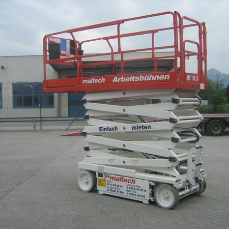 Scissor Lift MS 117Working height 11.7 mPlatform dimensions 2.5 m x 1.12 mCapacity 320 kg