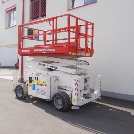 Scissor Lift MS 118HSWorking height 11.9 mPlatform dimensions 2.8 m x 1.6 mCapacity 454 kg